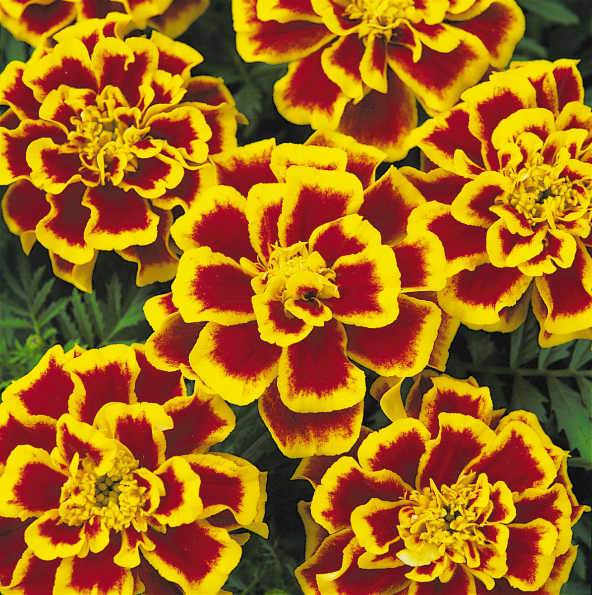 Marigold, Durango Bee Bi-colour 10-12″ tall Loves sun and heat Sold in a box of 8 plants for $6.50
